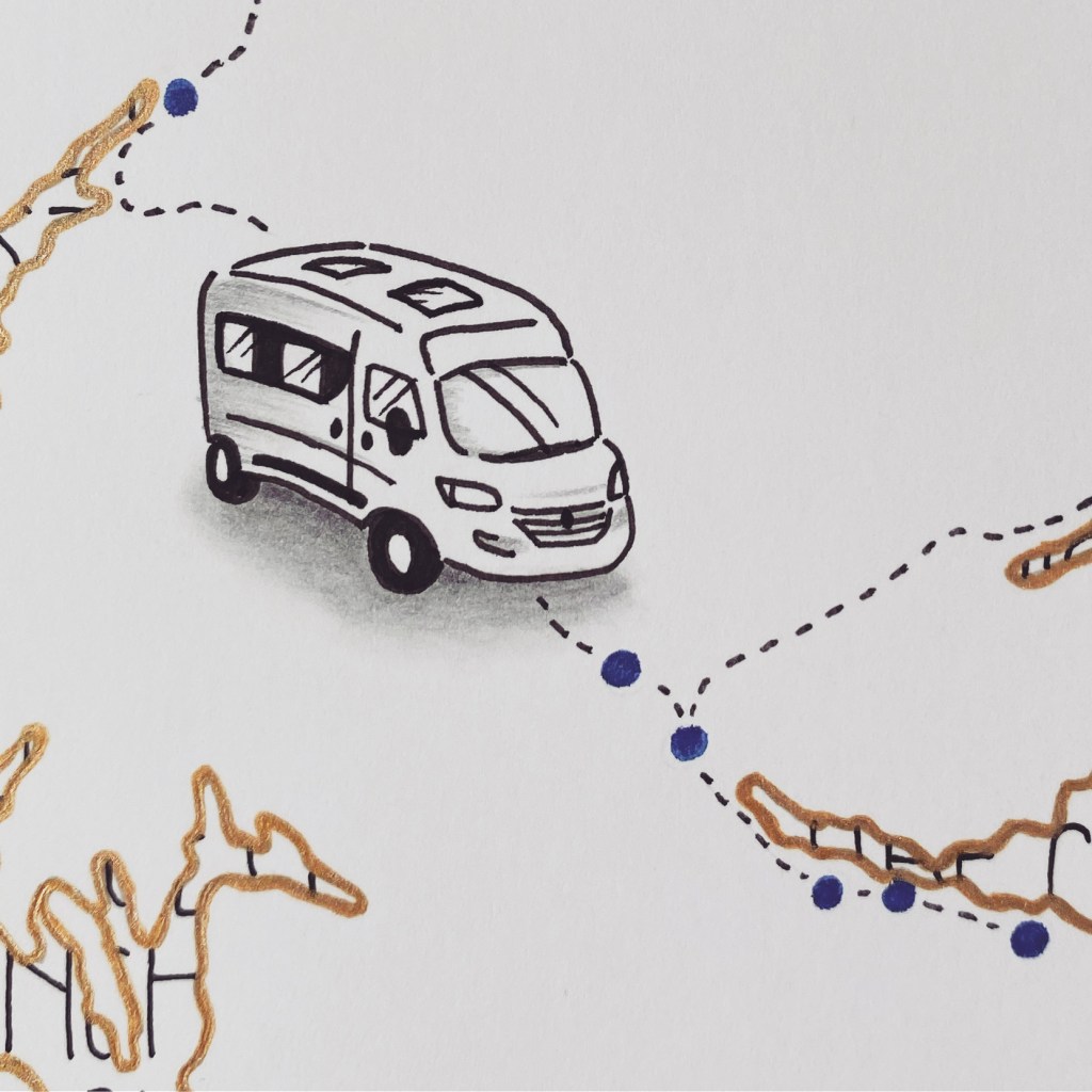 Pour rajouter une touche de voyage, je peux dessiner un avion, un train ou même un van sur votre carte.