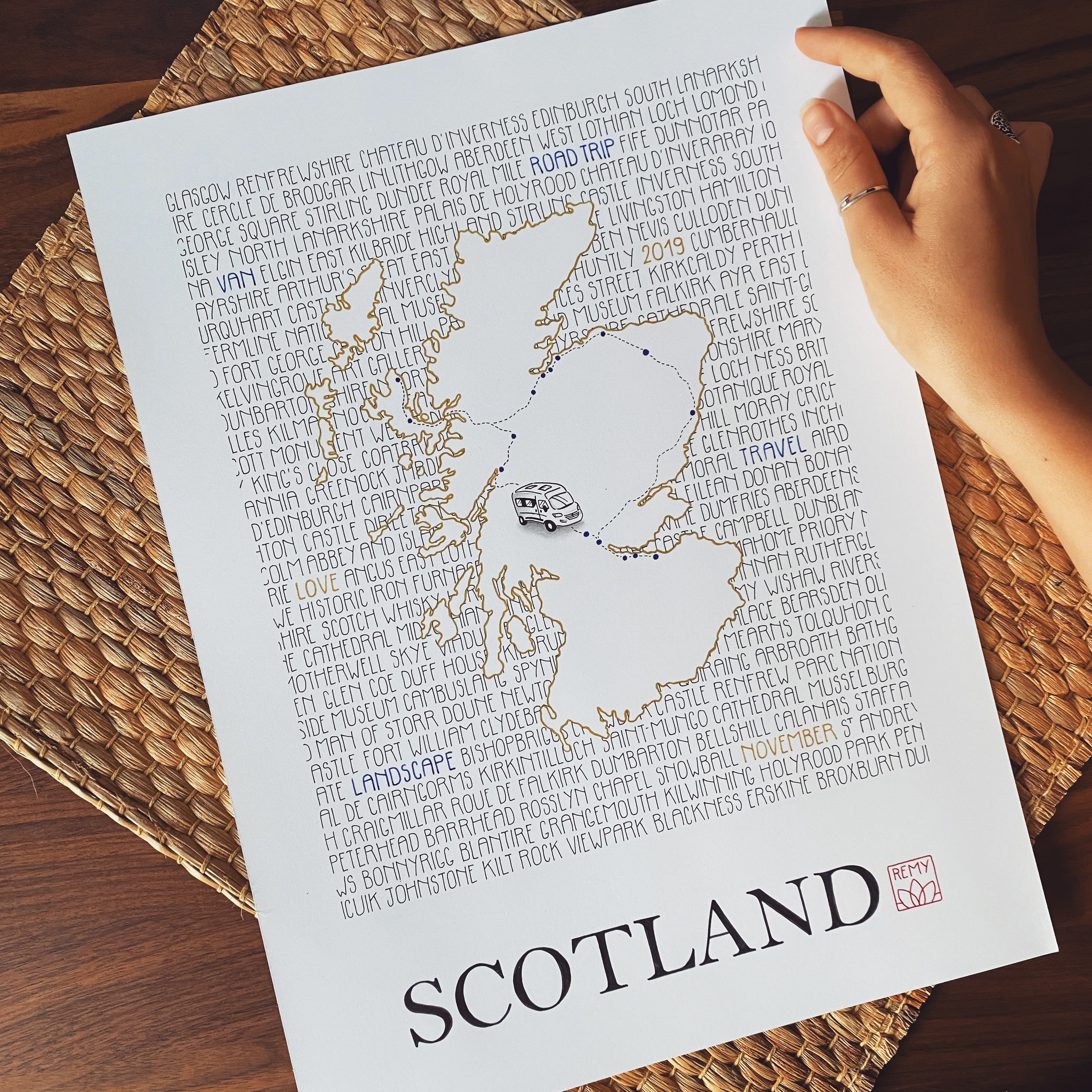 Une carte 100% écrite à la main qui correspond à vos voyages, vos souvenirs, à tous ces lieux